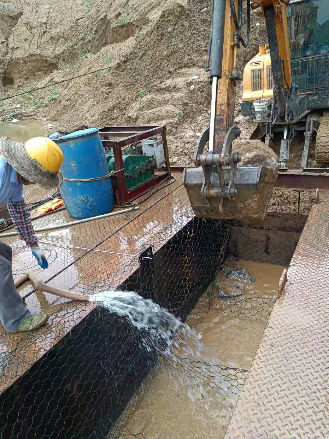 (3)試壓:檢查鋼管位置是否符合設(shè)計(jì)要求,確認(rèn)后由潛水員下水進(jìn)行栓緊進(jìn)水管在法蘭盤螺絲的作業(yè)。然后進(jìn)行水壓試壓驗(yàn)收。為了保證試驗(yàn)的準(zhǔn)確性,水壓試驗(yàn)應(yīng)使用經(jīng)檢驗(yàn)合格并有效檢定期內(nèi)的力表。管道入水時(shí),應(yīng)打開排氣閥認(rèn)真進(jìn)行排氣,水壓試驗(yàn)時(shí),應(yīng)有專人負(fù)責(zé)觀察檢查,隨時(shí)掌握壓力表的變化情況。先逐步升壓至試驗(yàn)壓力1.0MPa,恒壓、檢查接口、管身無破損及漏水現(xiàn)象,且10分鐘壓力下降不大于0.05MPa,則認(rèn)為試驗(yàn)結(jié)果合格。水壓試驗(yàn)完畢,應(yīng)將壓力泄放。如果壓降過大時(shí),由潛水員重新對進(jìn)水封板進(jìn)行緊固,兩岸人員同時(shí)處理試壓管件的泄漏,直至試壓驗(yàn)收達(dá)到合格要求。
