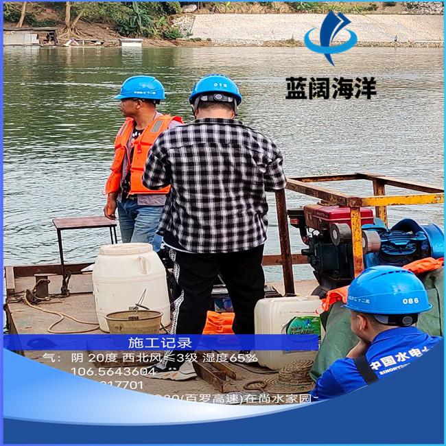 專業(yè)承接水下加固、碼頭水下維修加固、水下植筋加固、碼頭加固、碼頭淘空加固、水下大壩加固、水下打混凝土、橋墩水下檢查、江堤加固、堤壩加固、碼頭沉箱加固、水下拋石加固、水庫堤壩加固、水下加固單位、水下堵漏、水下拆除、水下切割、水下攝像、水下清理、水下清淤、水下測量工程、沉箱沉井、模袋混凝土、管道鋪設、管道維修等各類水下工程。