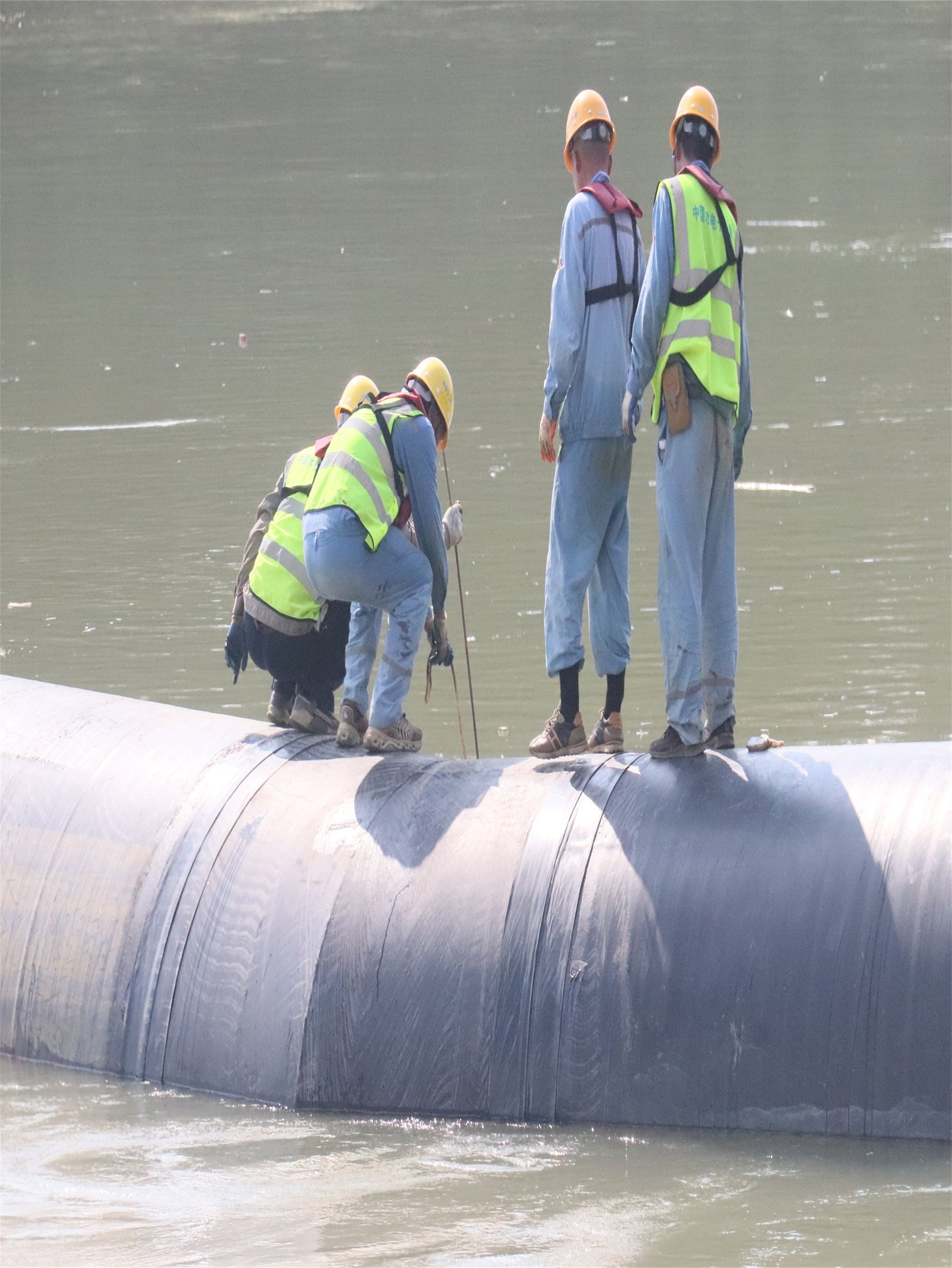 在起重人員的指揮下,緩慢將取水頭移動至預(yù)定位置。